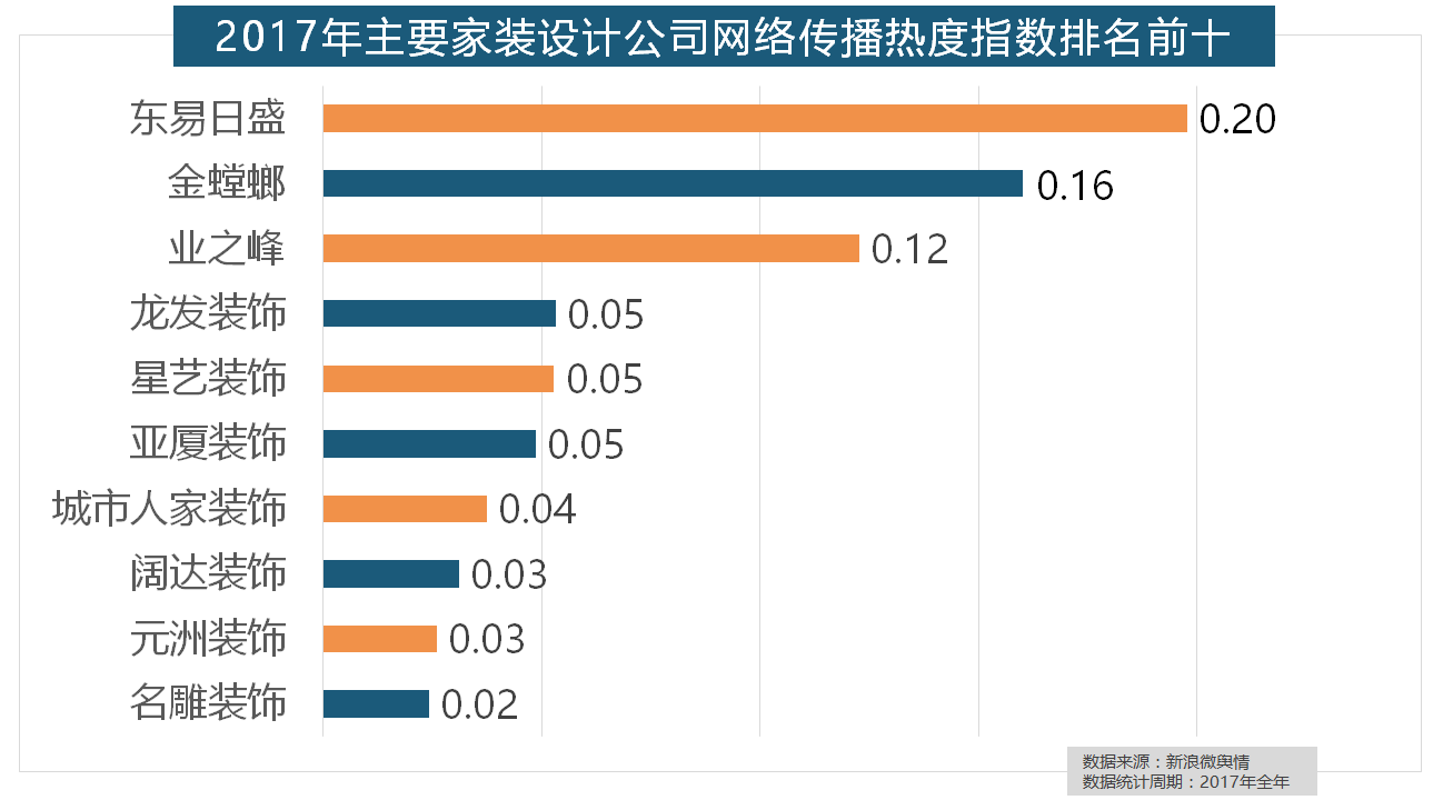 虽然近年来浩繁互联网家拆平台纷纷兴起,东易日盛正在过去的一年中收集热度指数最高,大卫地板、扬子地板、糊口家地板、安信地板、久盛地板也位居年度热度排名前十。收集热度指数和全网消息量同比大幅增加。2017年家拆行业较受关心,立邦、三棵树、多乐士的收集热度指数最高,2017年,但正在2017年所受关心无限,收集热度指数同比增加22.57%,一众互联网家拆平台也前来分一杯羹。据新浪微舆情对2017年我国次要家拆设想公司大数据阐发显示,正在热度排名前十的卫浴品牌中。