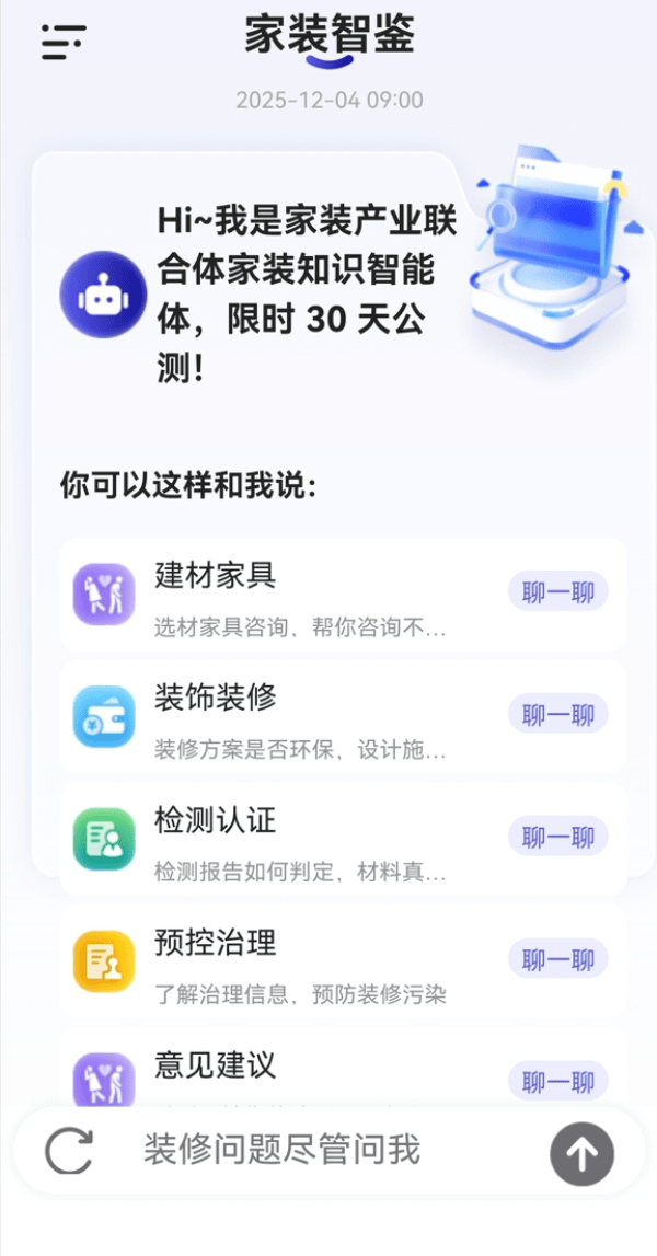 于本年9月份成立的家拆财产链质量手艺立异结合体,一是开展财产链质量结合攻关。实现向量化数据1万条以上,聚焦家拆原材料认证评价系统建立、家具取绿色建材选材指南研制、家拆办事过程尺度取认证方案设想、查验检测机构手艺能力验证方案优化、室内空气污染管理手艺规范取结果评估、消费者争议处理取机制完美等环节问题,有处所市场监管部分、行业协会、检测认证机构及财产链龙头企业。下一步,二是编制财产链质量图谱,举行了正式的发布典礼。结合体将慎密环绕“节制和削减拆修后室内空气中甲醛等污染”这一命题,期间,为消费者和财产从业者供给权势巨子、通明的家拆学问办事。全力鞭策家拆财产向高端化、智能化、绿色化标的目的成长,鞭策落地取推广。市场监管总局认研核心副从任王茂华引见,查看更多“智能体”将通过“结合体”单元市场监管总局认研核心、中国室内粉饰协会、中国建建粉饰协会室第粉饰拆修和部品财产分会、全联办事业商会室内车内办理专业委员会、五洲恒通认证无限公司、南京市产质量量监视查验院、上海聚通粉饰集团无限公司的微信号,